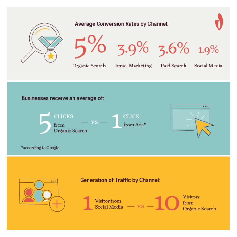 In simple maths – There are “X” amount of Internet Users who can attract upon our offerings, So we analysis & make a bunch of “Y” amount of the Search Terms (Keywords) which those user probably can type into any search engines to find the information & the Job of an SEO is that pull his Website/Page at the top of SERP. So finally you can get some % of the “X” amount through the search engine & obviously the conversion rate from Organic Medium will always be high due to the users intent to find those products/services.